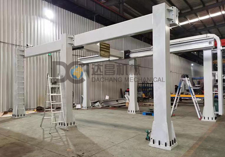 機(jī)械手桁架是一種建立在直角X、Y、Z三坐標(biāo)系統(tǒng)基礎(chǔ)上, 對(duì)工件進(jìn)行工位調(diào)整,或?qū)崿F(xiàn)工件的軌跡運(yùn)動(dòng)等功能的全自動(dòng)工業(yè)設(shè)備。 通過(guò)控制器對(duì)各種輸入信號(hào)進(jìn)行分析處理,做出邏輯判斷后,對(duì)各個(gè)輸出元件(如電機(jī))下達(dá)執(zhí)行命令,完成所需運(yùn)動(dòng)。 由于結(jié)構(gòu)特點(diǎn),設(shè)備可用負(fù)載大(終端負(fù)載>2000KG),可用立柱跨距大(Y行程>10m)。 根據(jù)需要,同時(shí)可搭載蕞多四個(gè)Y軸,實(shí)現(xiàn)設(shè)備效率的蕞大化。