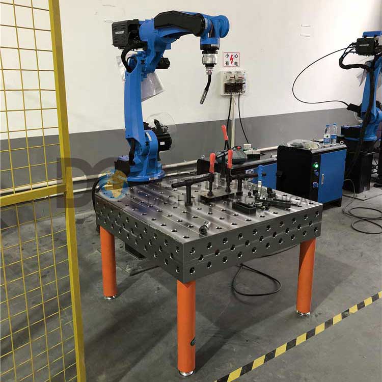 機械手自動焊接工裝選用性能優(yōu)越的柔性焊接工裝平臺、互換性高的柔性組合焊接工裝夾具、靈活變換的焊接機械臂。對提高焊接產品的精度和質量、縮短加工時間同樣起著非常重要的作用!在焊裝生產過程中,采用機器人自動化焊接已經是大家無可置疑的共識,但是,選用性能優(yōu)越的柔性焊接工裝平臺及互換性高的柔性組合焊接工裝夾具對提高焊接產品的精度和質量、縮短加工時間同樣起著非常重要的作用。