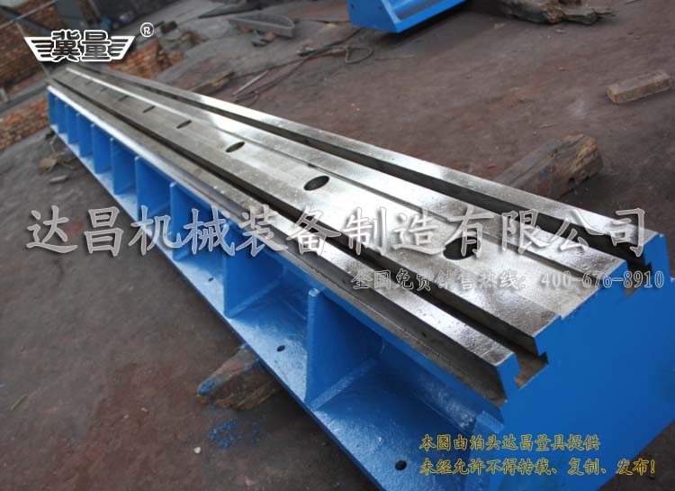 雙槽地軌別稱:雙槽地軌也稱為雙槽地梁、雙槽平臺(tái)、雙槽槽鐵。雙槽地軌材質(zhì):HT200-300,QT400-600,ZG20-45#。雙槽地軌之間間隙(用木條墊實(shí))5mm;地軌在水平面內(nèi)不平行度允差:0.10/1000,全長(zhǎng)0.5mm。每列雙槽地軌在垂直平面內(nèi)不平度允差:0.10/1000,全長(zhǎng)0.5mm。