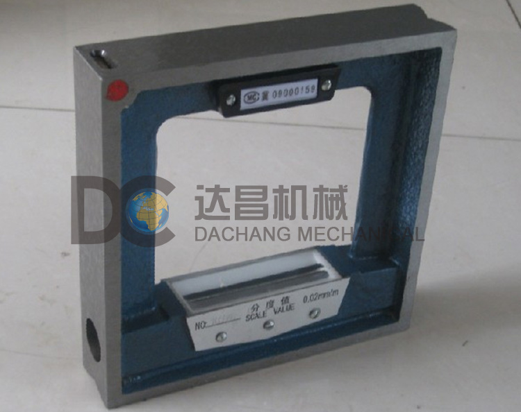 框式水平儀的精度為0.02/1000mm,即每米2C。上面刻度每格就是2C,即每有一格的偏差代表在一米長內(nèi)有一頭高出了2C。